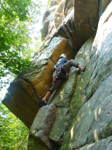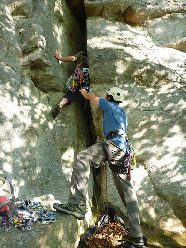 I lead Layback, which I thought had a nice variety of types of moves. Not easy given my current shape, but not huge problems either. Will went next followed by Kenway. The starting chimney gave them both a bit of difficulty. I think this was mainly due to their taller frame.